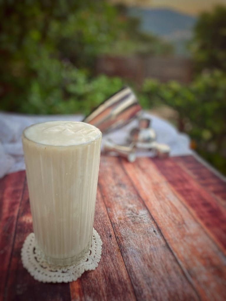 Ajouter de la glace et shaker vigoureusement pendant au moins 2 minutes (mieux 5, ou utiliser un shaker électrique).