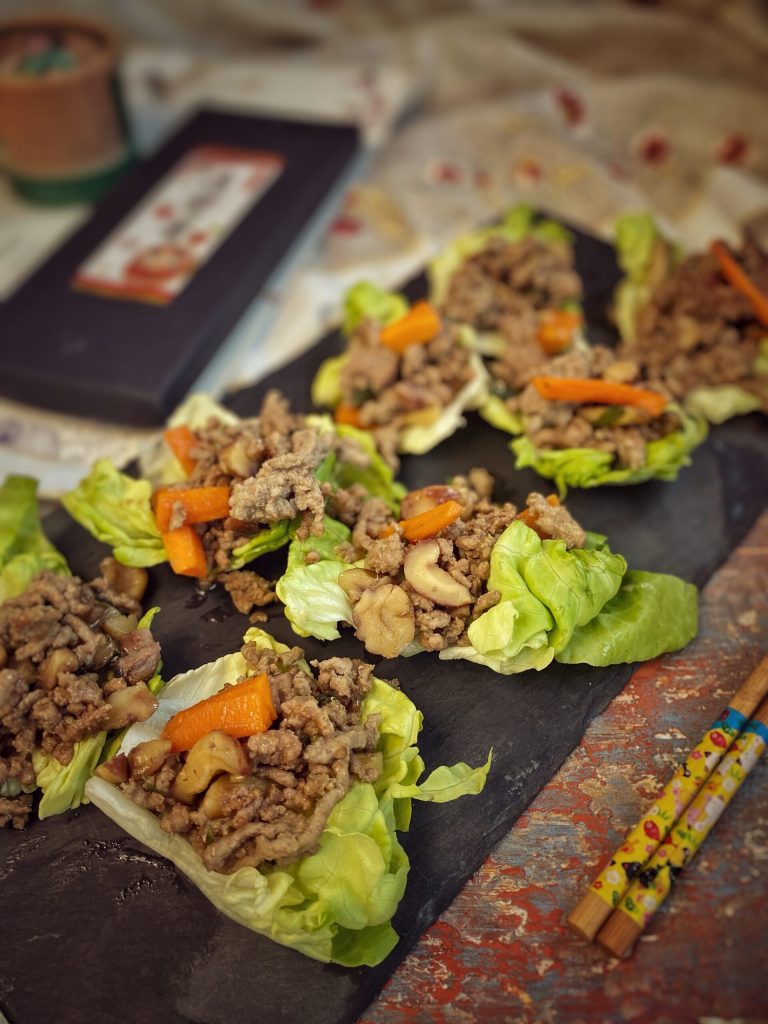 Il s’agit de viande de porc hachée, légumes et châtaignes d’eau hachées servis avec une sauce à base de sauce soja et sauce aux huîtres, sur des feuilles de laitue ou d’iceberg fraîches.
