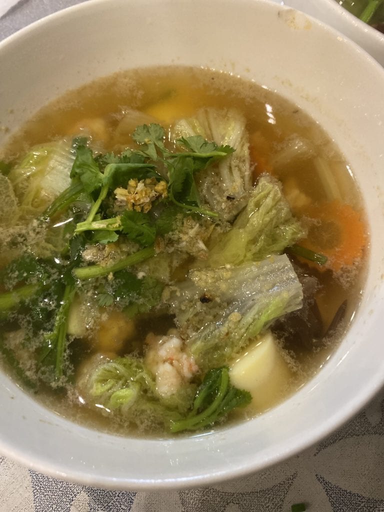 Lors de notre voyage à Ao Nang en octobre 2024 avec ma mère, nous avons goûté la soupe Gaeng om au restaurant Jungle Kitchen et ma mère a opté pour une variante aux crevettes.