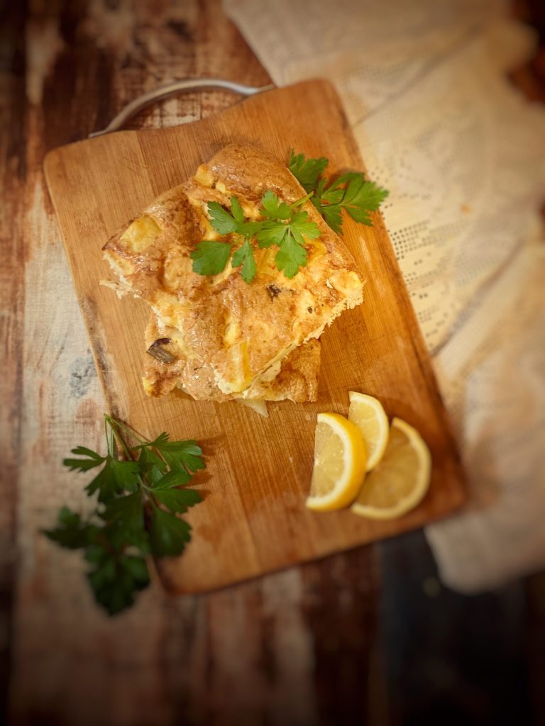 Similaire à une omelette italienne ou une tortilla espagnole, le tajine tunisien est une omelette d’œufs facile et délicieuse garnie de poulet, de persil et d’épices (baharat ou tabel).
