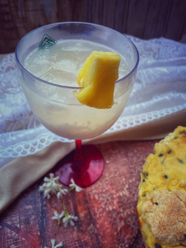 🍹Accompagnée d’une PINA COLADA (rhum, jus d’ananas, crème de coco).