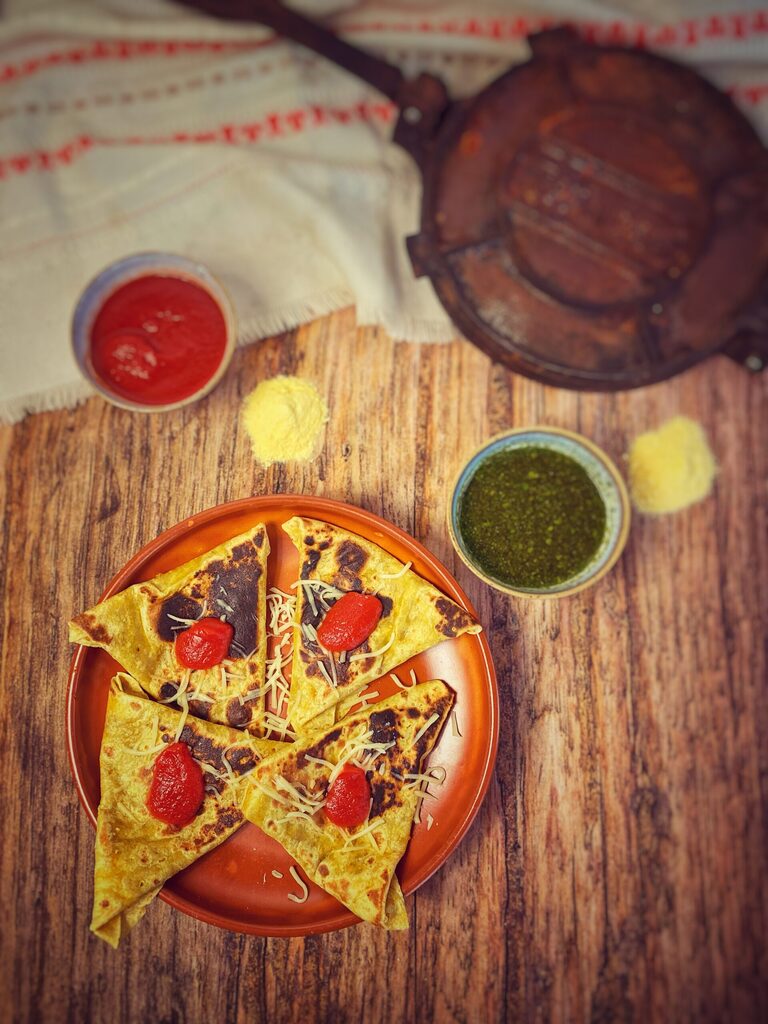 Les tetelas sont un antojitos ou en-cas à base de tortillas en forme de triangle traditionnellement fourrées de frijoles refritos et cuites sur le comal.