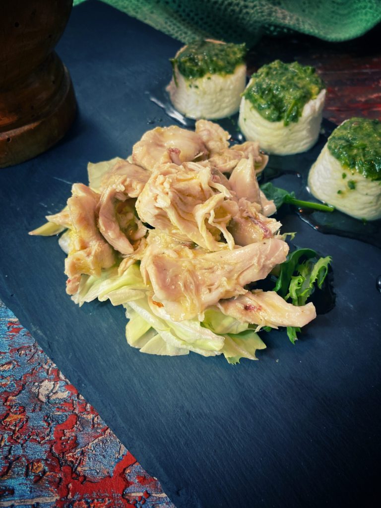 Je l’ai servi avec sauce verte piémontaise sur des tomini.