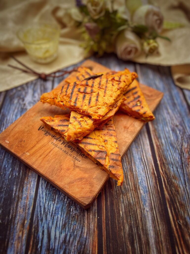 Le toast de patate douce est ma variante créative du toast tyrolien, également connu sous le nom de « toast du fermier », avec du fromage et du speck, une recette typique du Trentin.