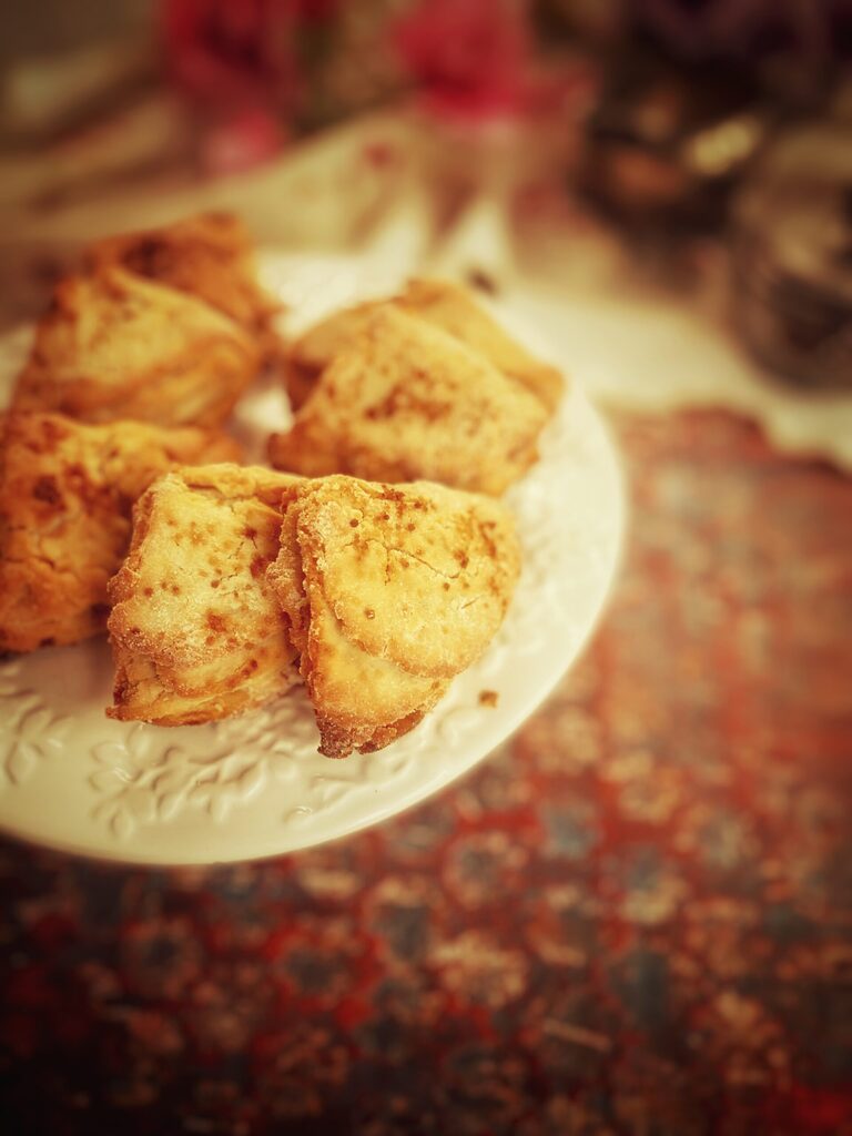 Les tvorogli pechenyelar sont des biscuits préparés avec le fromage russe tvorog dans la pâte et recouverts de sucre.