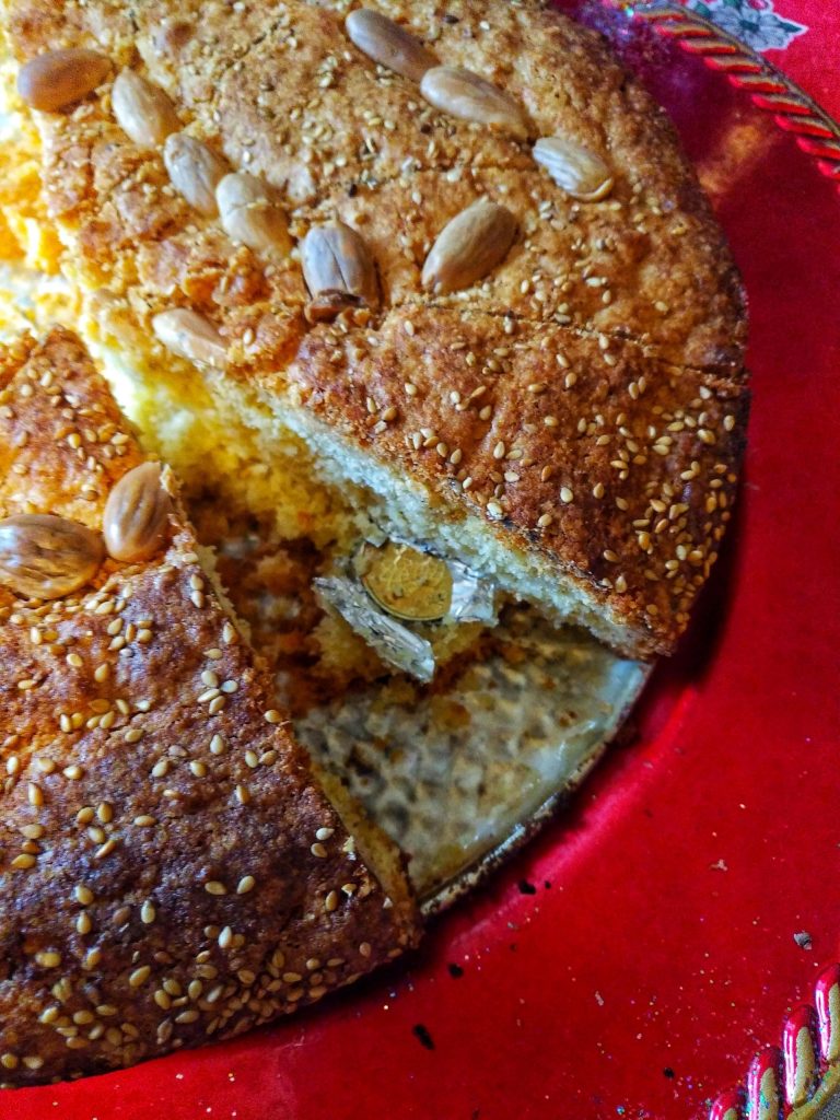 La Vasilopita est un gâteau grec préparé généralement pour la Saint-Basile (le premier de l’année), mais aussi pour le Nouvel An et l’Épiphanie.