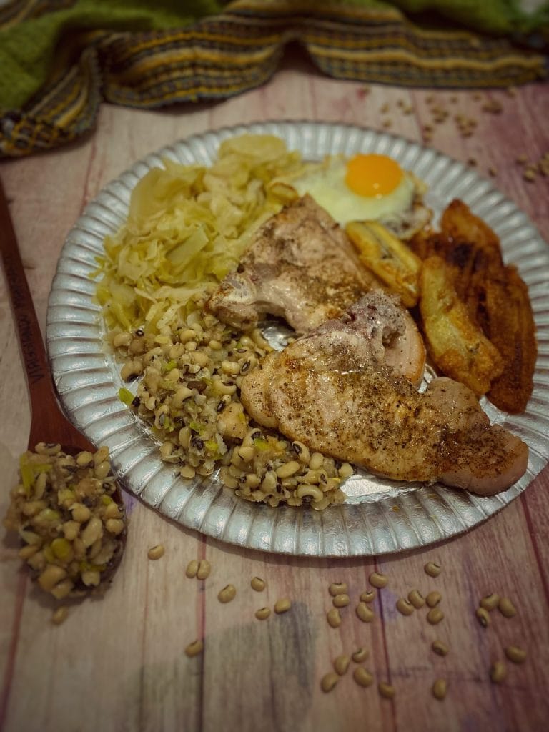 Ceux-ci accompagnent la côtelette de porc, le chou sauté et la banane frite et souvent un œuf frit est également ajouté, parfois du riz, de la linguiça et du torresmo.
