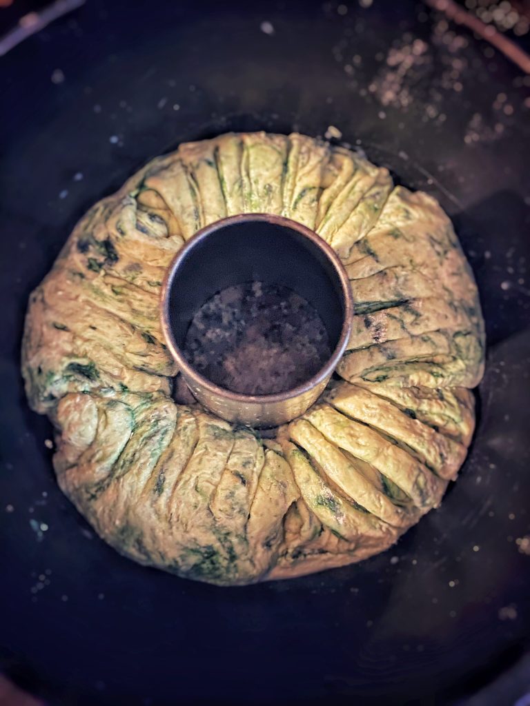 ▶La pâte de base est celle du Hokkaido milk bread japonais (ne le confondez pas avec le Shokupan !) fourré d’une garniture sucrée ou salée, divisé en petits morceaux, roulés et cuits côte à côte dans un moule semblable à une couronne.