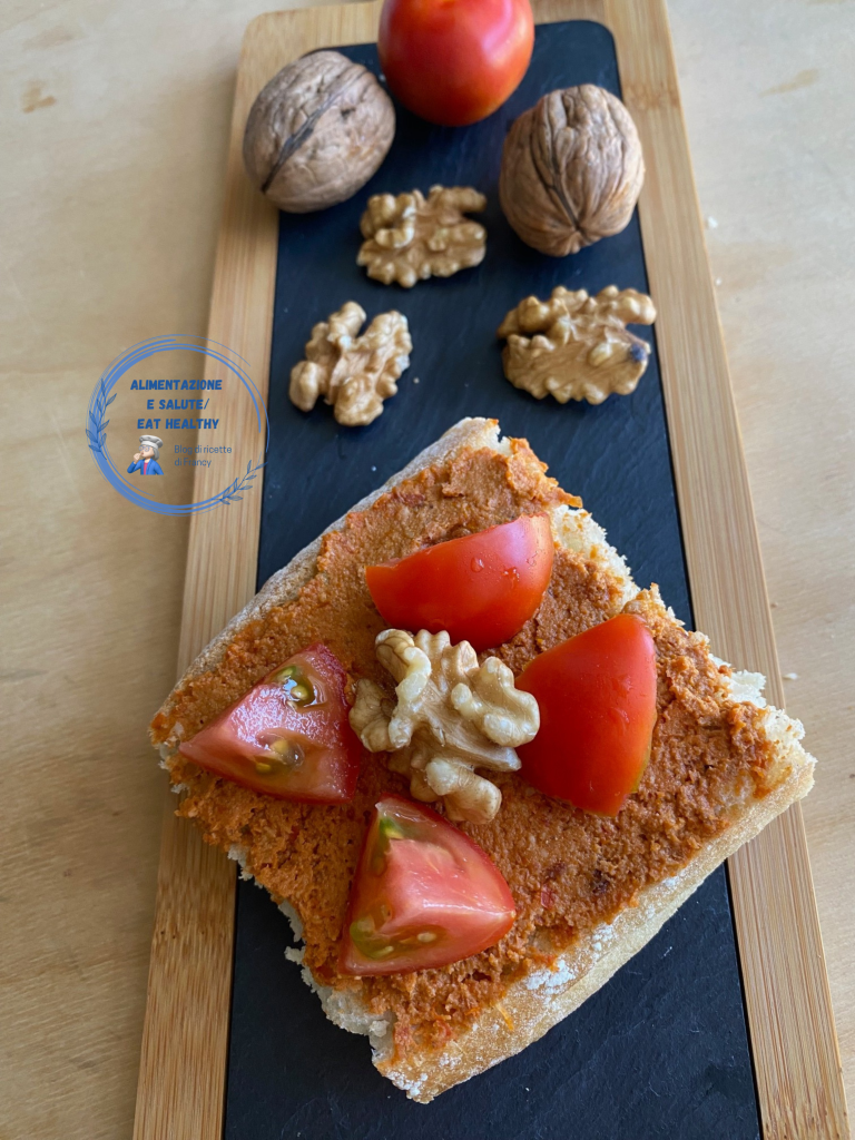 Met de hulp van de mixer kun je een uitstekende saus bereiden, toast gewoon het brood en voilà, je bruschetta met rode pesto en walnoten is klaar en belin wat lekker!