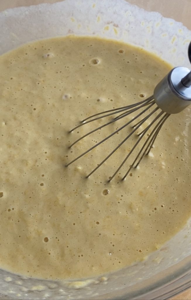 Om meer lucht in het mengsel te krijgen en de muffins zacht en luchtig te maken, gebruikte ik een elektrische garde.