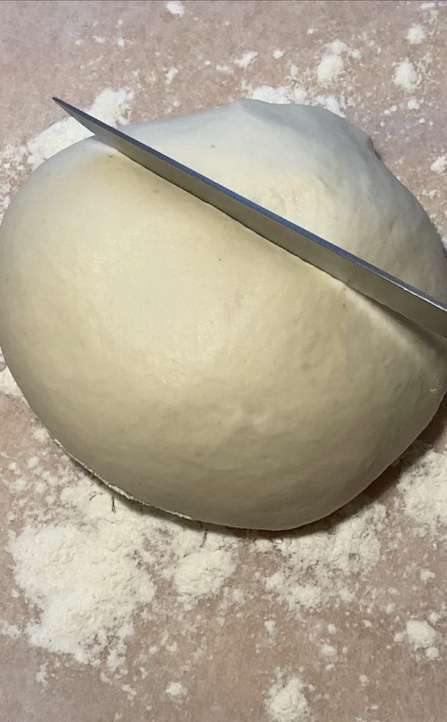 Snijd de deegbal in twee ongelijke helften (foto 4)