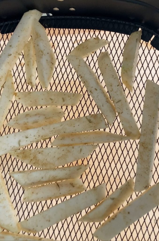 Knolselderijfrietjes in de airfryer.