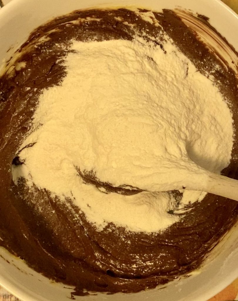Om het te maken, begin je met een traditionele chocoladetaartbasis, waaraan ik een gesmolten pure chocoladereep heb toegevoegd voor een nog intensere smaak.