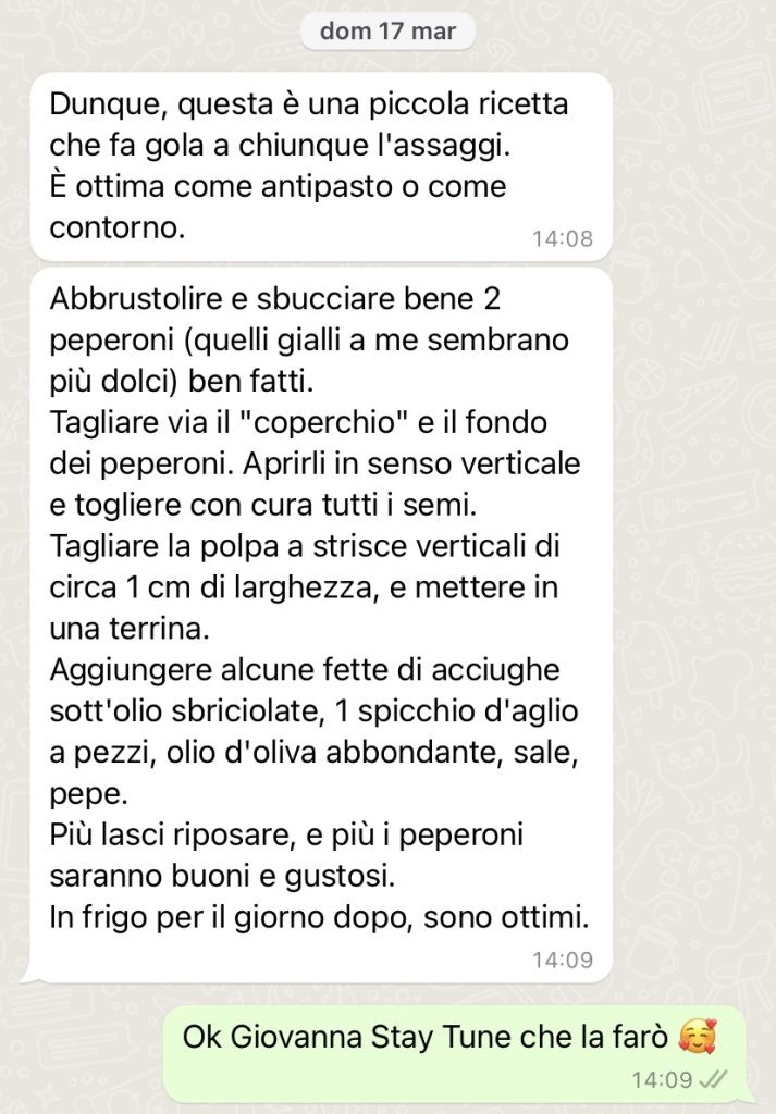 Het recept is van mijn collega Giovanna die, na maanden van aandringen, me eindelijk haar versie via WhatsApp heeft gestuurd en die je op de foto’s kunt vinden.