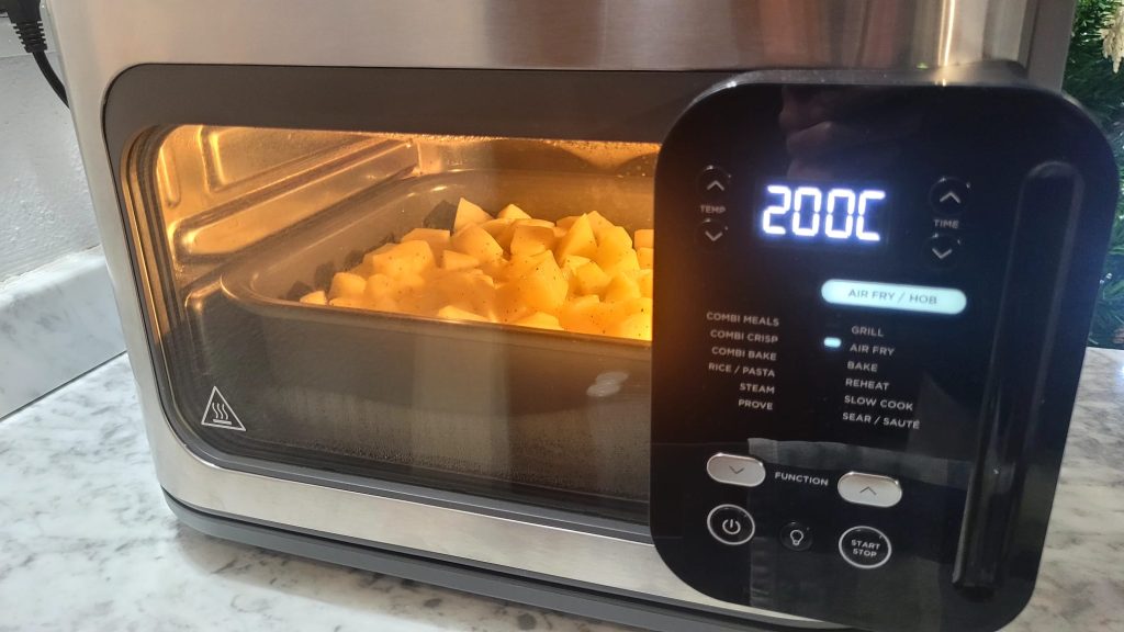 Deze aardappelschotel in de airfryer is super lekker. Ik wist niet wat ik moest maken voor het avondeten en ik had aardappelen en slechts 1 ei…te weinig om een aardappelomelet te maken die ik heel lekker vind, dus opende ik de koelkast en vond ik een paar plakjes gekookte ham en crescenza…en zo kwam ik uit op deze aardappelschotel. Ik heb de aardappelen gekookt alsof ik een klassieke aardappelomelet ging maken en heb ze gecombineerd met wat ik in huis had…het resultaat is echt geweldig!