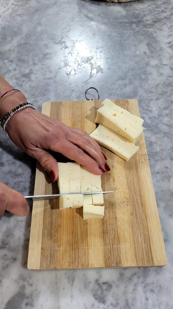 Vervang de caciotta of kaas door mozzarella, zorg ervoor dat je het goed laat uitlekken