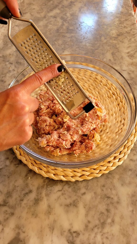 Voeg geraspte Grana of Parmezaan, geraspte provolone, zout, peper, geraspte of geperste knoflook toe als je dat liever hebt