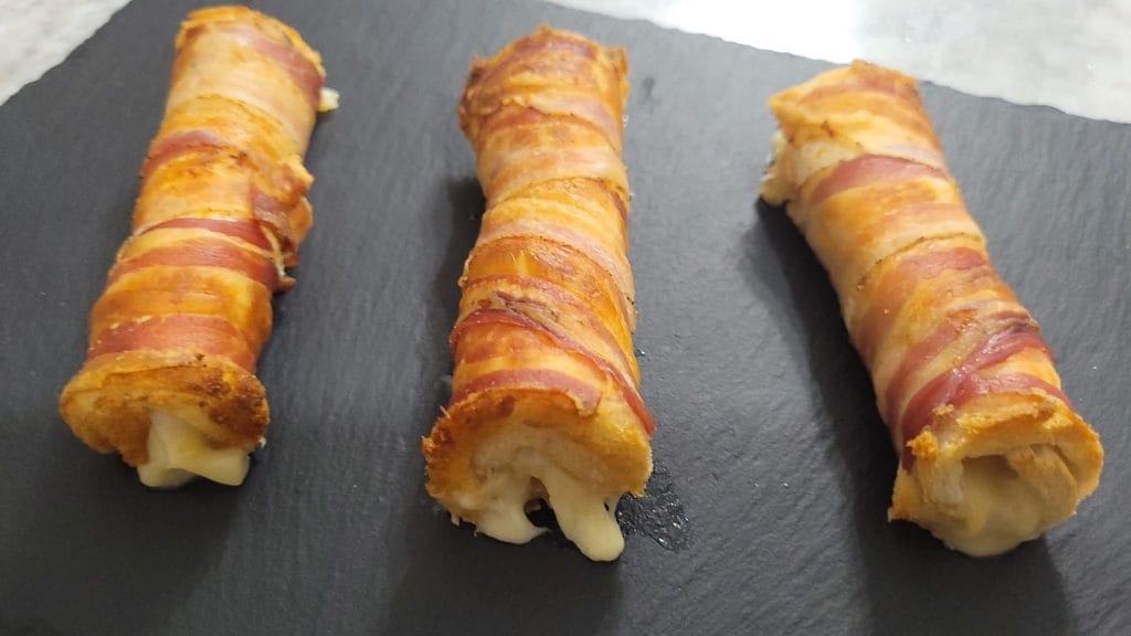 Wat zijn deze broodrolletjes met krokante bacon lekker en origineel! Met een beetje fantasie is hier een eenvoudig en snel idee om te maken, maar vooral lekker. De rolletjes worden in een paar stappen gemaakt met sandwichbrood of witbrood, dat een stukje kaas omhult dat tijdens het koken in de airfryer smelt en de bacon aan de buitenkant krokant wordt… verleidelijke gedachten toch?! Met sandwichbrood is het mogelijk veel lekkernijen te maken zoals de Broodpakketjes in de airfryer, in dit geval zit de vulling in het brood dat eerst door het ei en dan door de paneermeel wordt gehaald… heerlijk!
