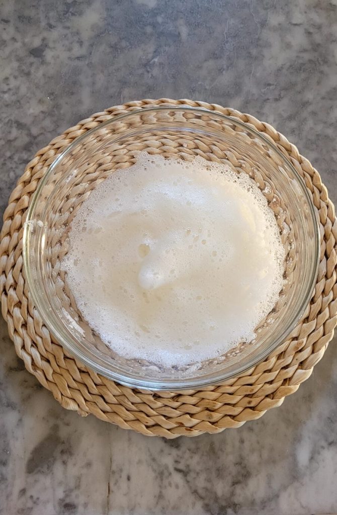 • Doe de eiwitten in een kom met een snufje zout en klop ze met de elektrische garde: ze hoeven niet stijf te worden geklopt, alleen halfopgeklopt.