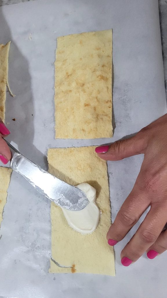 • Neem de tweede reep en smeer deze bijna over het hele oppervlak met de pecorino