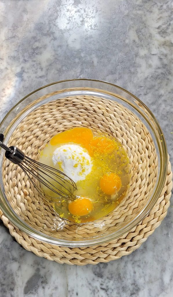 Klop eieren, suiker en de geraspte citroenschil met een garde gedurende 5 minuten.