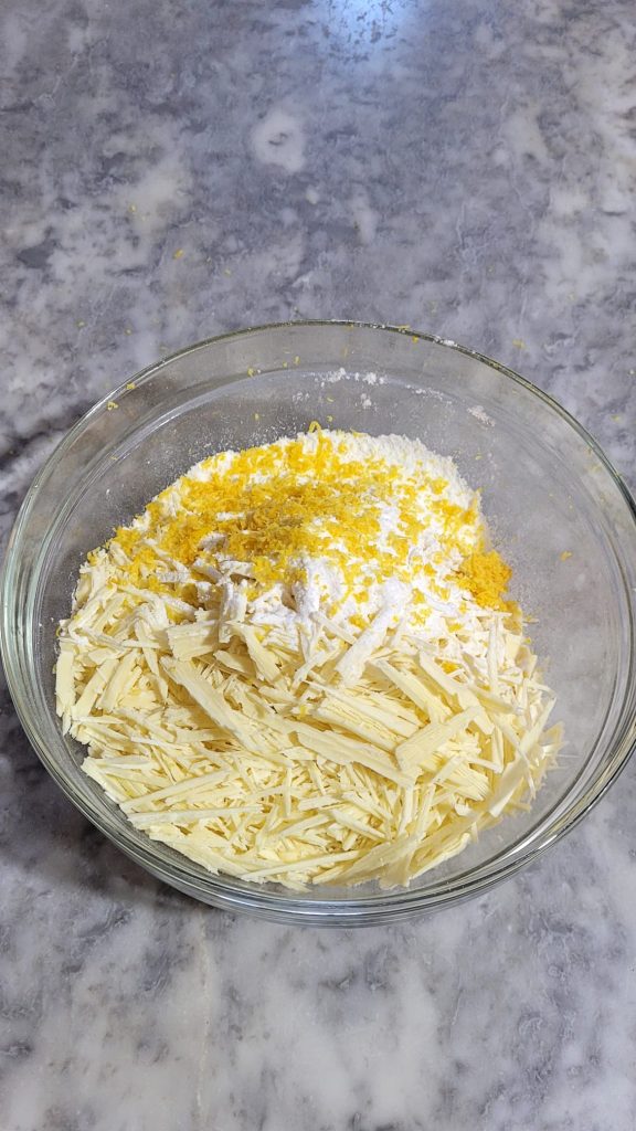 Je kunt gekonfijte citroenschilletjes toevoegen aan het deeg: 25 g voor een bakvorm van 18/20 cm en 30 g voor een bakvorm van 22 cm