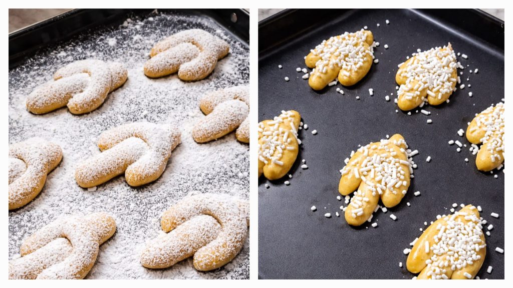 Ook de grootte van de koekjes bepaal je zelf: ik kreeg er 20 uit door stukjes deeg van ongeveer 30 g te gebruiken, maar je kunt colombines kleiner of groter maken naar eigen smaak.