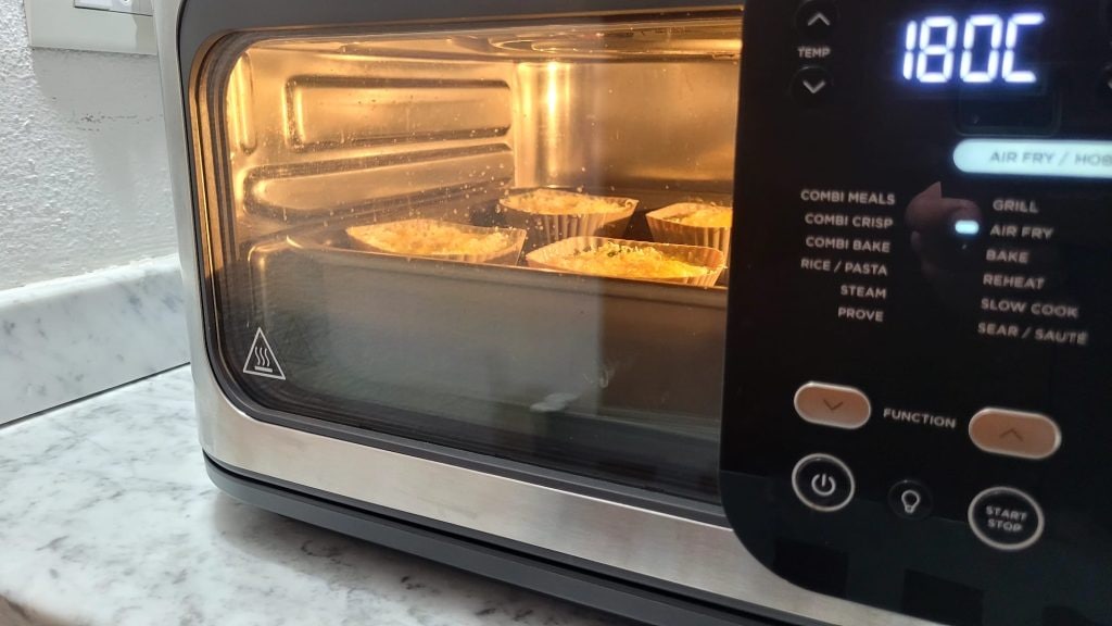 • Plaats de bakvormpjes op het rooster en kook op 180°C gedurende 15 minuten, verlaag naar 160°C en ga verder voor nog eens 10 minuten.