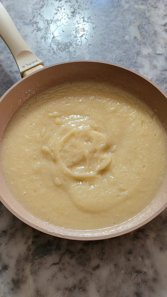 Maal ze met een staafmixer tot een homogene puree. Zet apart en laat nog een paar minuten afkoelen