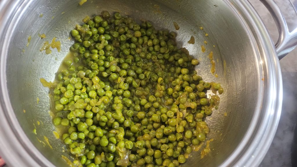 Het bereiden van de erwten is heel eenvoudig. Snipper de ui grof en laat deze op laag vuur verwelken in een pan met een scheutje extra vergine olijfolie. Zodra de ui is verwelkt, voeg je de erwten toe en laat je ze op smaak komen. Giet er een beetje water bij en laat ze 10/15 minuten sudderen tot de erwten zacht zijn geworden
