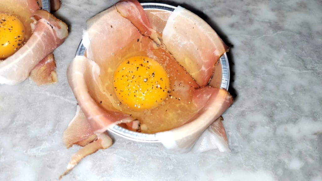 Maak het spek voorzichtig los van de randen van de bakjes met de punt van een mes