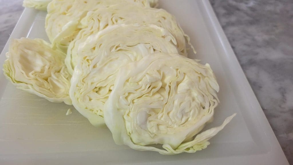 Gebruik een niet te grote kool, zodat de plakken niet te groot worden. Nadat je deze hebt schoongemaakt, snijd je hem in plakken van ongeveer 1 cm tot maximaal 1,5 cm