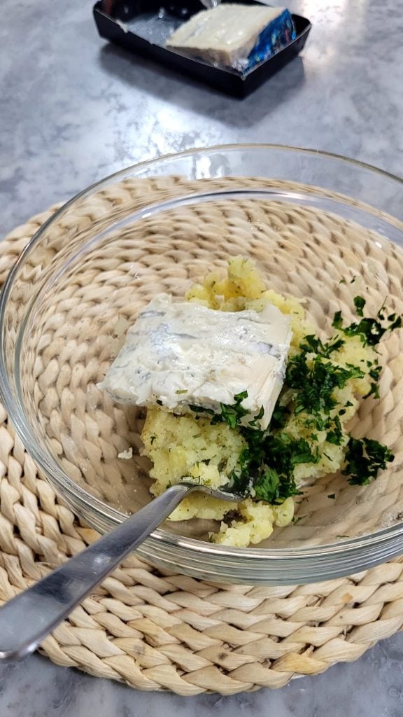 • Neem het aardappel-gorgonzola mengsel en vul alle aardappelen