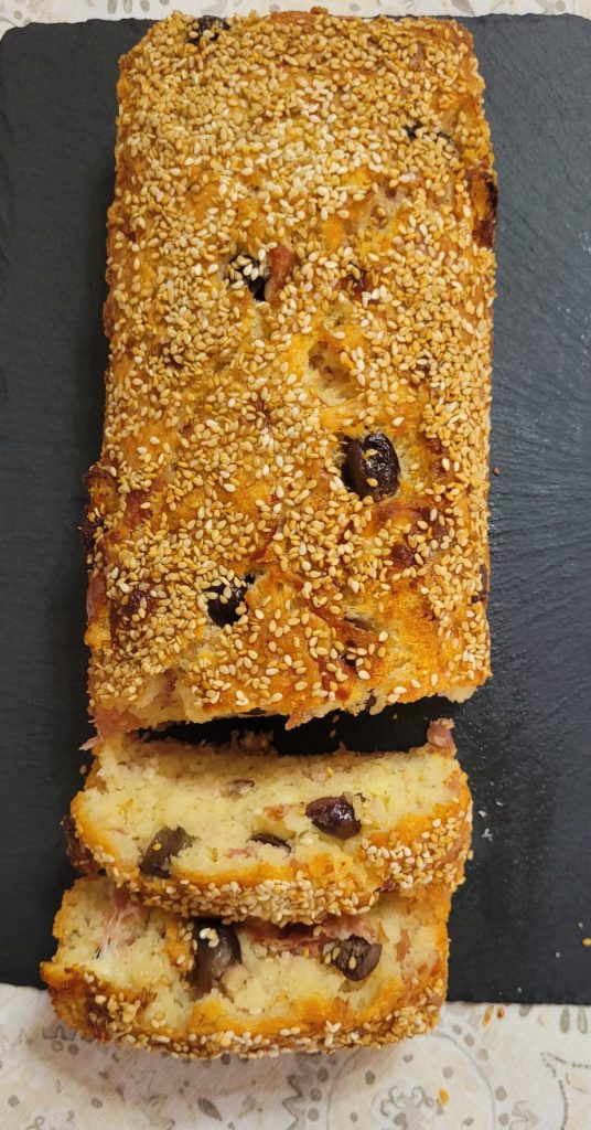 Je hartige cake, gebakken in de airfryer, is klaar. Laat het een beetje afkoelen voordat je het snijdt en serveert…het is ook lekker op kamertemperatuur