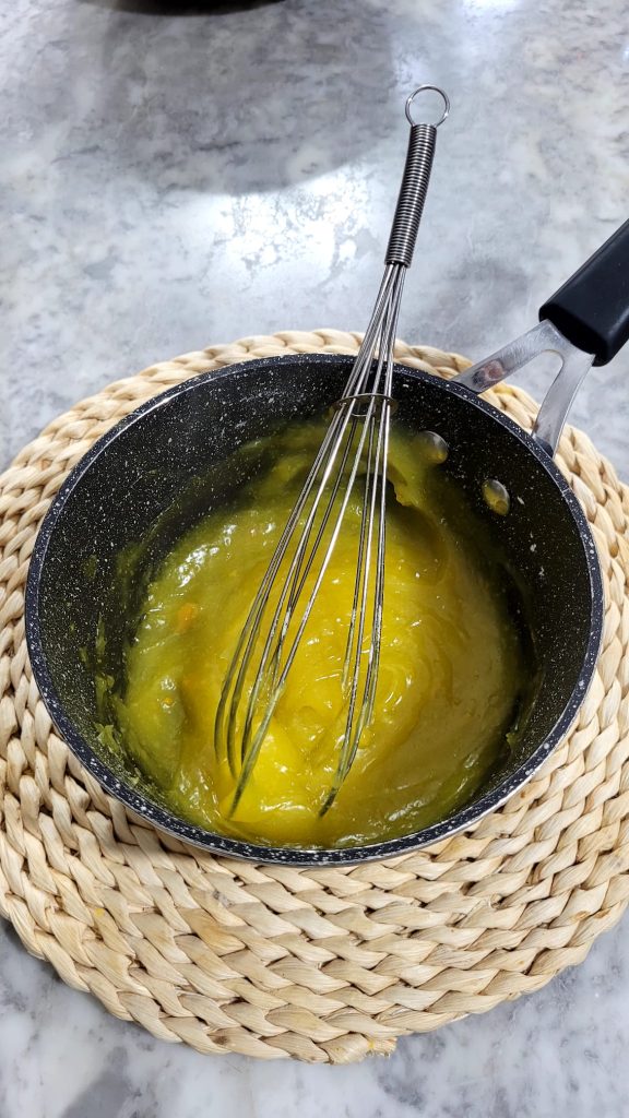 - 1 theelepel oranjepasta (of een stuk onbewerkte schil)