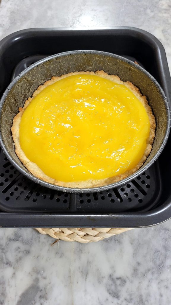 Bereiding van de Kruimeltaart met Sinaasappelcrème in heteluchtfriteuse