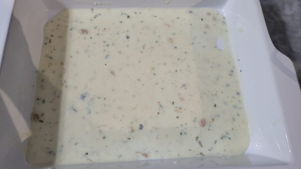 Neem een rechthoekige ovenschaal en bedek de bodem met bechamelsaus