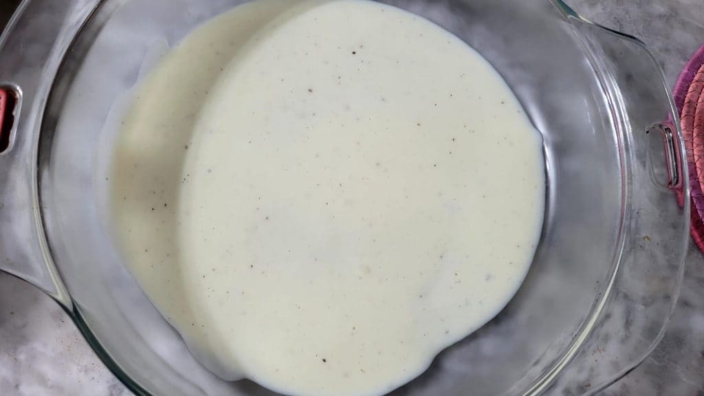 Voeg beetje bij beetje de melk toe totdat de bechamel is ingedikt. Breng op smaak met zout en voeg een snufje peper en nootmuskaat toe.