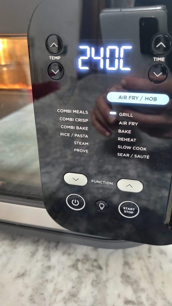 • Als je luchtfriteuse deze functie niet heeft, ga dan verder met koken op 200°C voor nog eens 7/8 minuten of tot er een mooie goudbruine korst is gevormd