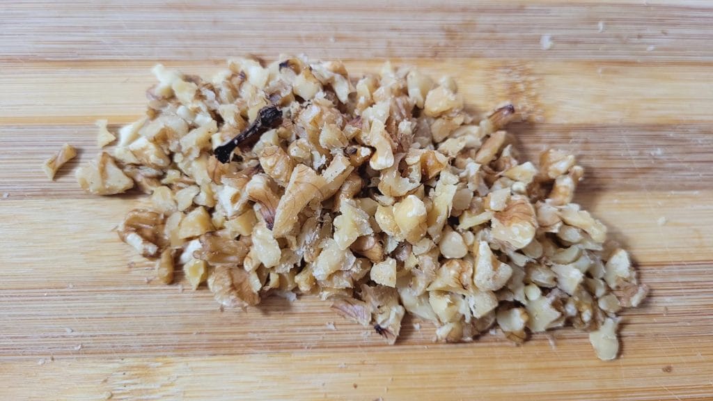 • 120 g walnoten (70 g om te vermalen en 50 om grof te hakken met een mes)
