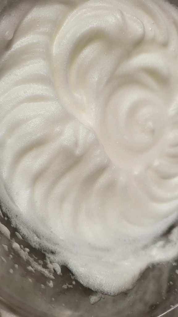 Klop met een elektrische mixer de eiwitten stijf met een snufje zout. Ze moeten goed stevig zijn