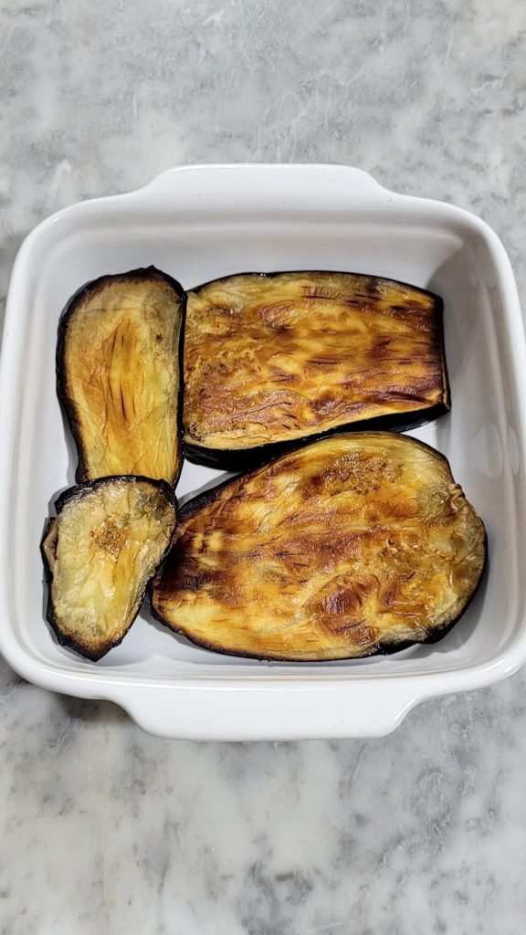 Zodra de aubergines klaar zijn, zout ze lichtjes