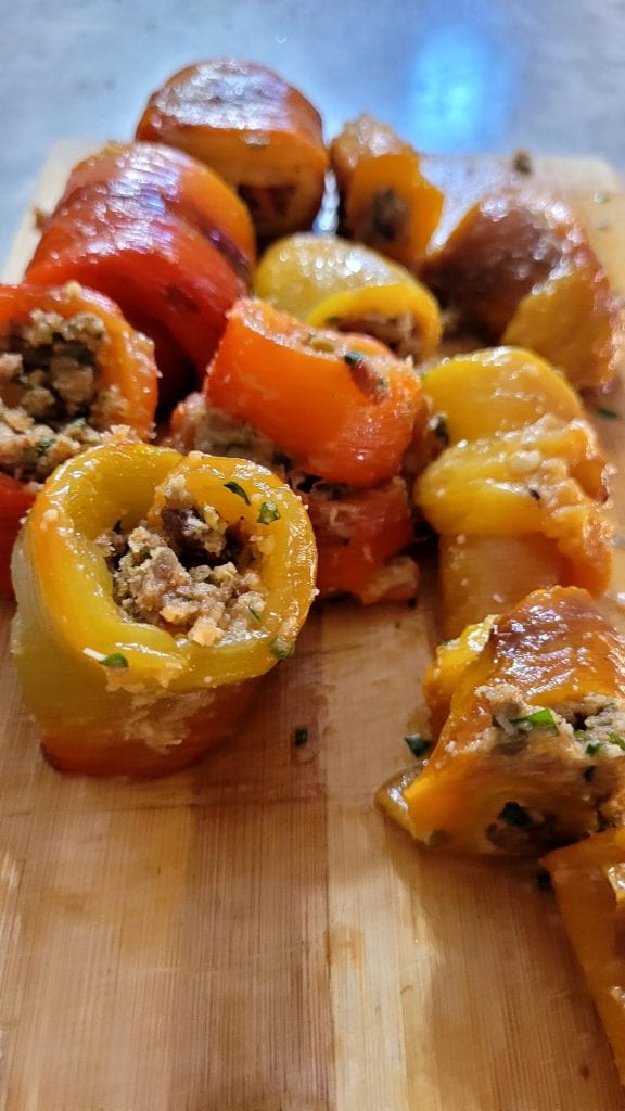 Hier is een versie van de Paprika Rolletjes, gekookt in de Airfryer, zonder vlees, maar met een vulling van paneermeel en kaas verrijkt met gedroogde tomaten, rozijnen, ansjovis en kappertjes. Perfect als voorgerecht of als tweede gang, zeer eenvoudig te bereiden, laten we deze periode nog steeds gebruiken om ze op een originele en smakelijke manier te consumeren.
