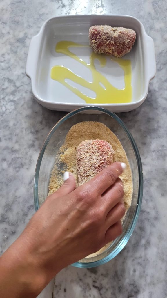 Haal ze door het paneermeel en plaats ze één voor één in een licht ingevette ovenschaal