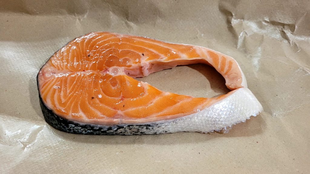 Begin met het verwijderen van eventuele graten en de huid van de zalm. Was het en dep het droog met keukenpapier