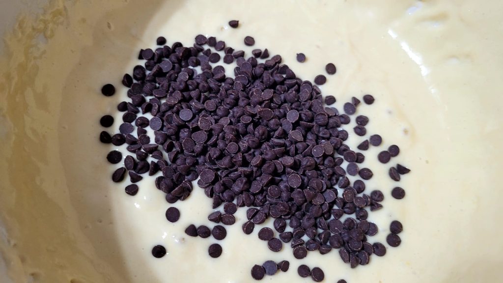 Laten we deze heerlijke plumcake yoghurt en chocoladedruppels in de airfryer gaan maken….