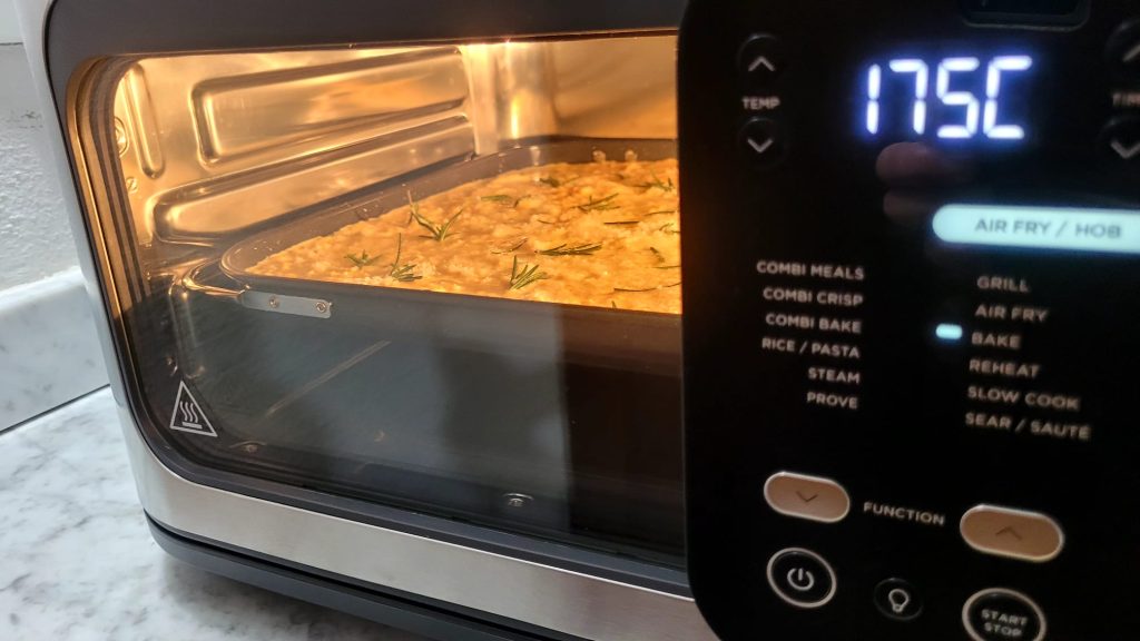 Verplaats de bakvorm naar de airfryer en bak op 175°C x 15 minuten, verhoog vervolgens naar 190°C voor nog eens 20 minuten