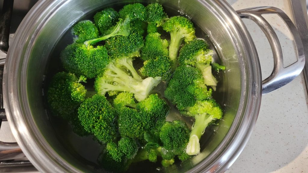 Snijd het harde stuk van de stam van de broccoli af, verwijder de grote bladeren en snijd de roosjes en was het grondig. Vul ondertussen een pan met water, voeg het zout toe en zet het op het vuur. Zodra het water kookt, kun je de broccoli toevoegen en kook ze tot de stelen zacht worden.