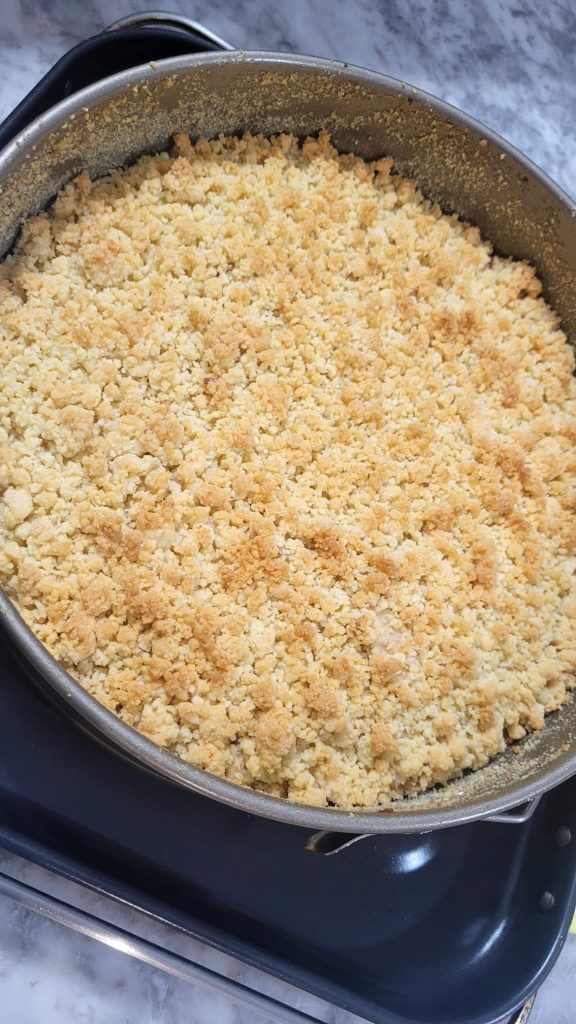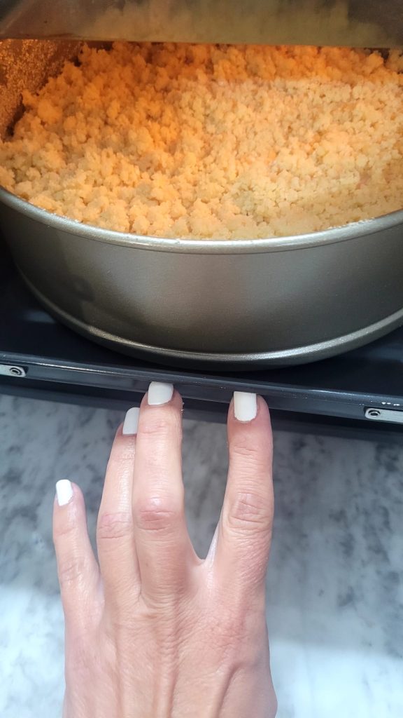 Als de vorm van 22/24 cm te groot is voor je airfryer, kun je een vorm van 20 cm gebruiken en met de overgebleven room en kruimeldeeg mini sbriciolata maken met muffinvormen