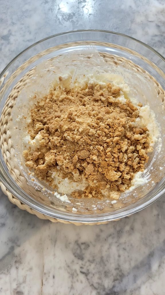 Voeg de verkruimelde amaretti toe aan de ricottaroom